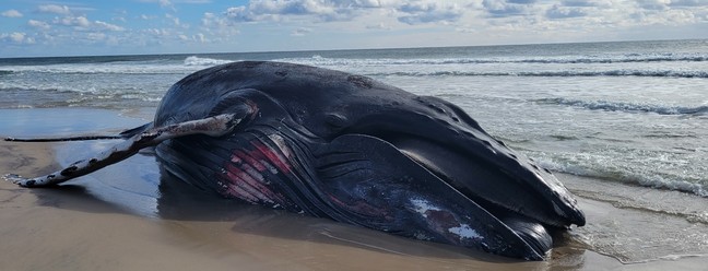 Macho da espécie jubarte tinha entre 13 e 14 metros de comprimento — Foto: Reprodução
