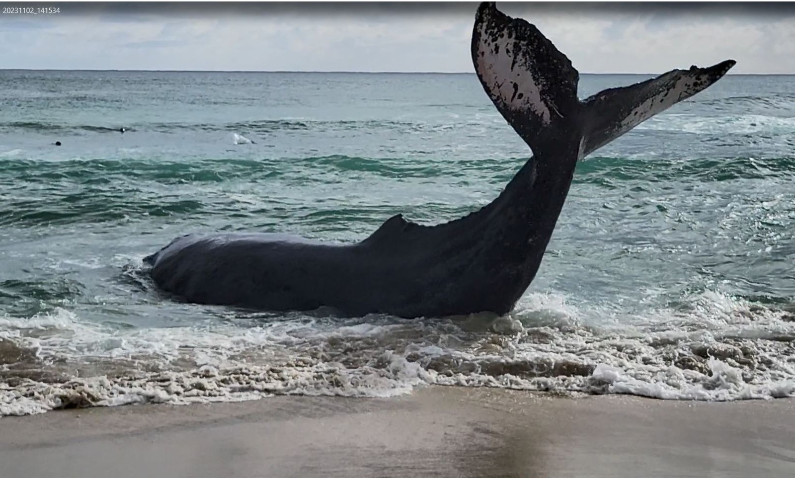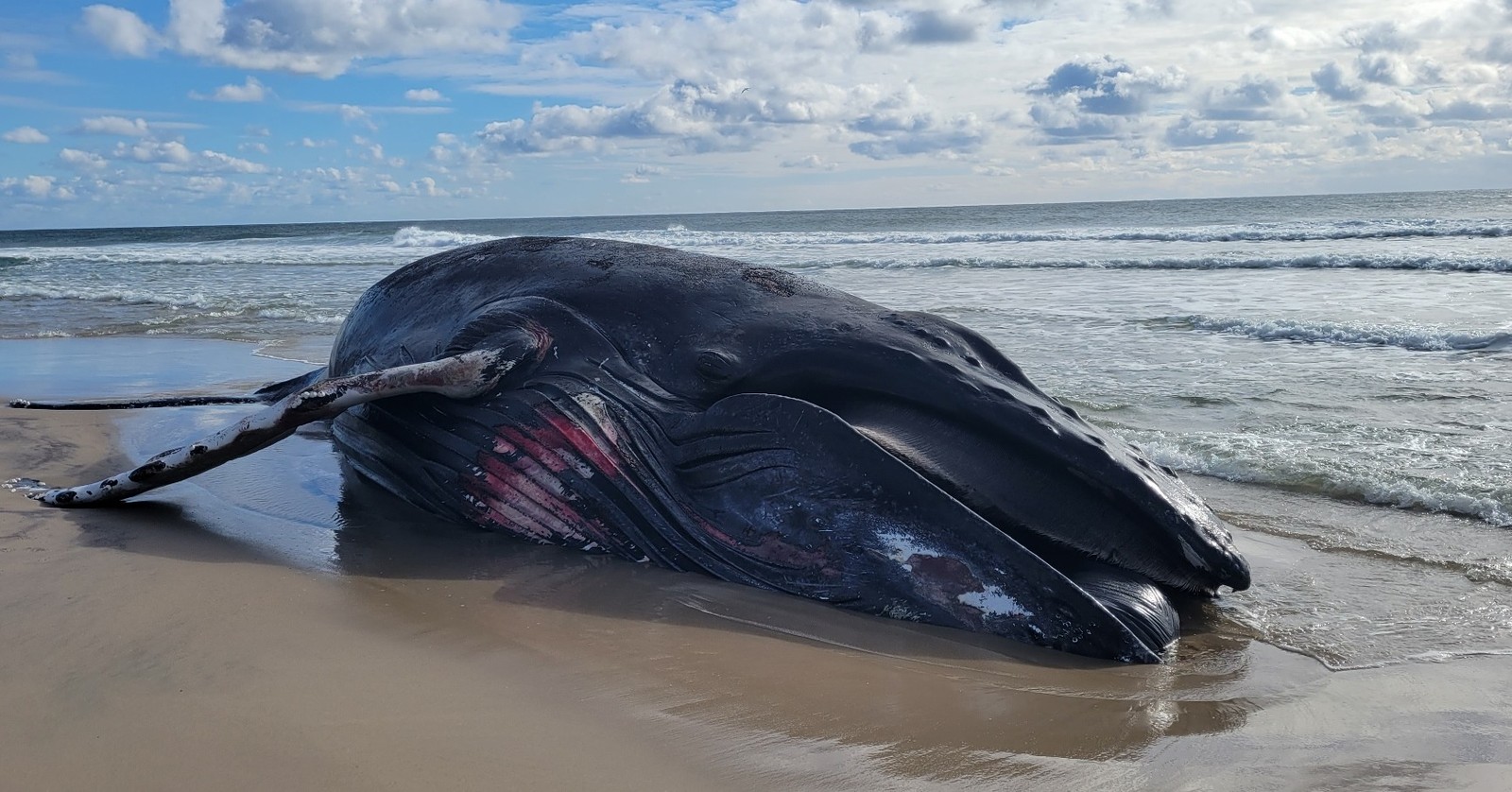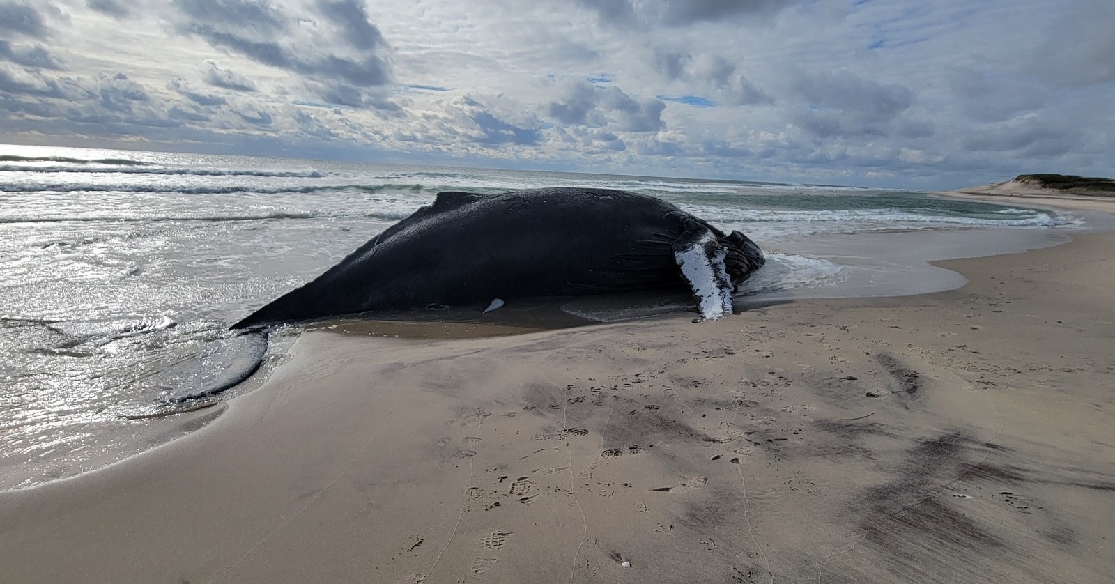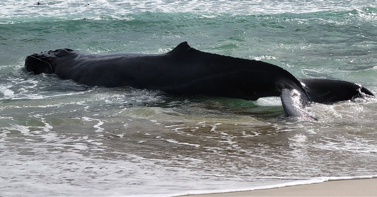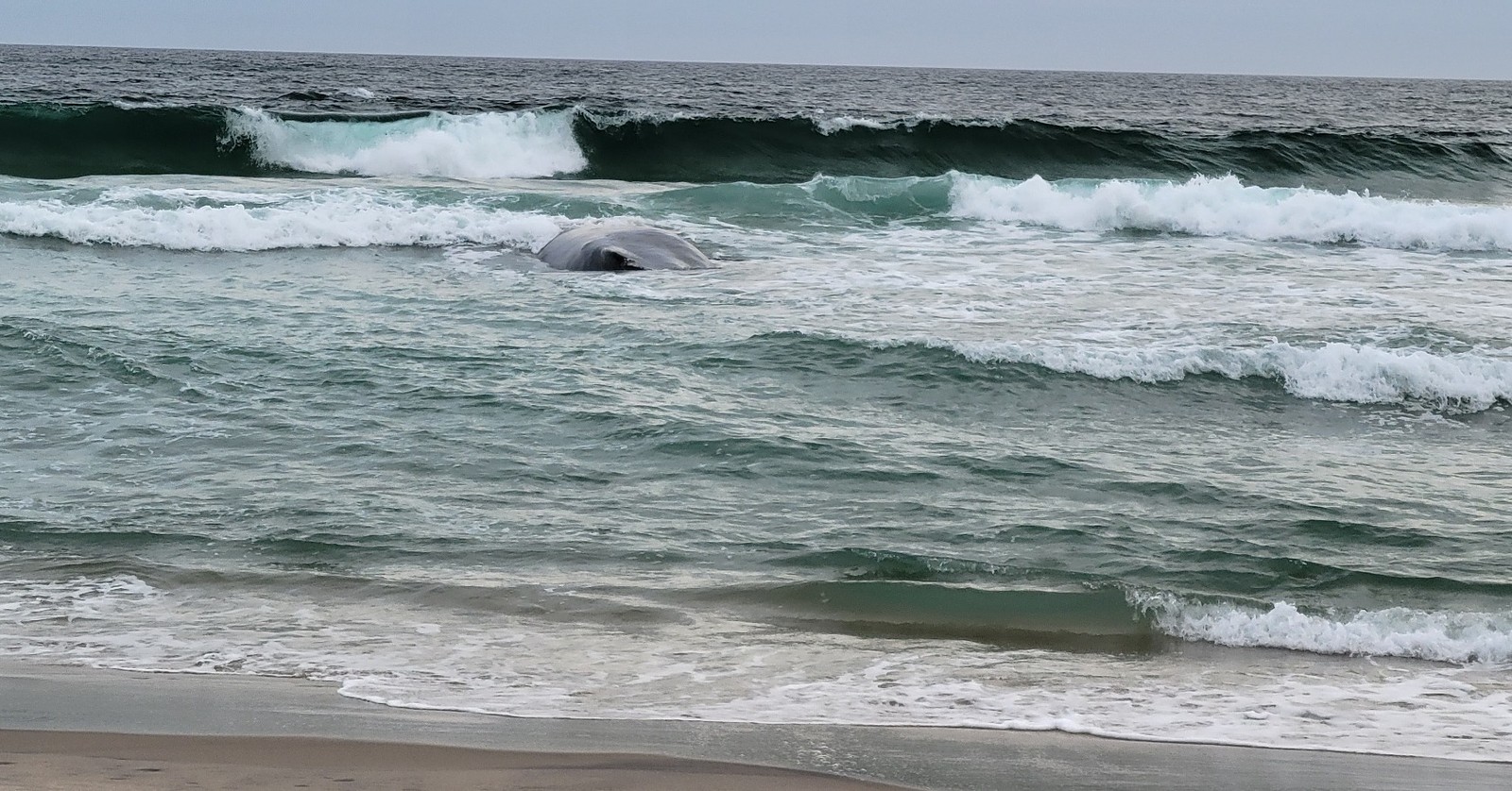Baleia estava encalhada na Ilha Sable — Foto: Reprodução