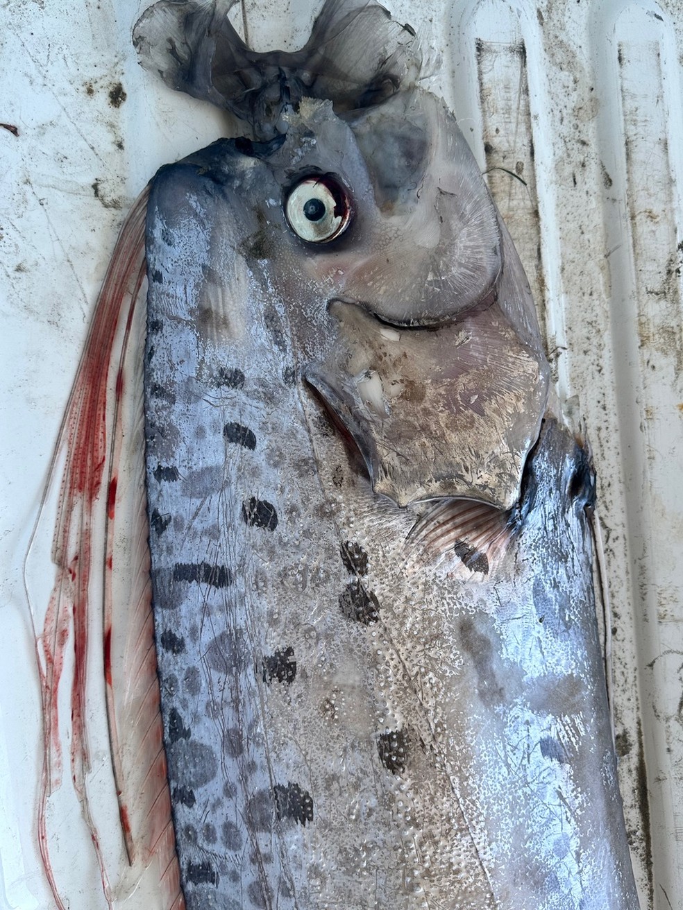 Segundo a Scripps Institution of Oceanography da Universidade da Califórnia,em San Diego,este foi um dos menos de duas dúzias avistados no estado em mais de 120 anos. Com um corpo longo e prateado,o animal tinha mais de três metros de comprimento,podendo chegar a até nove. Além disso,tem olhos grandes e espinhos vermelhos em formato de coroa.