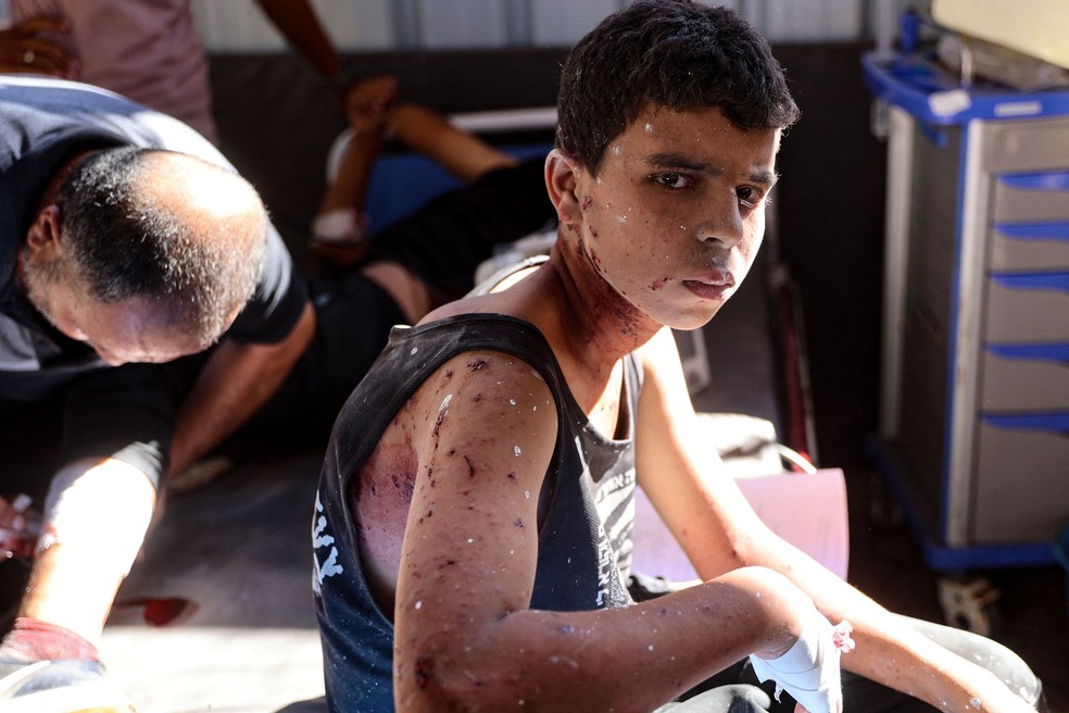 Menino palestino ferido após bombardeio israelense busca tratamento no hospital al-Maamadani,em Gaza — Foto: Omar al-Qattaa/AFP