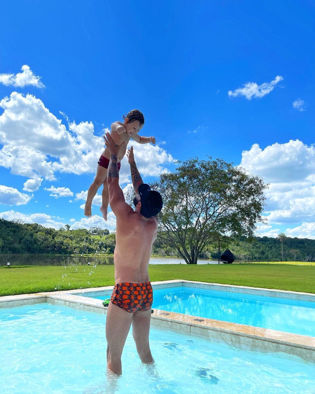 Gusttavo Lima curtiu banho de piscina com filho em sua luxuosa casa — Foto: Reprodução Instagram