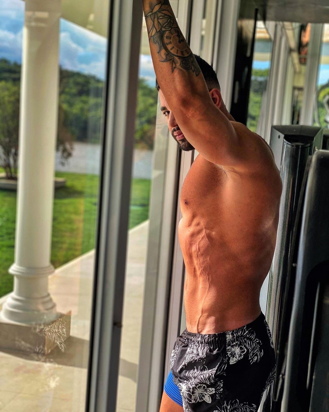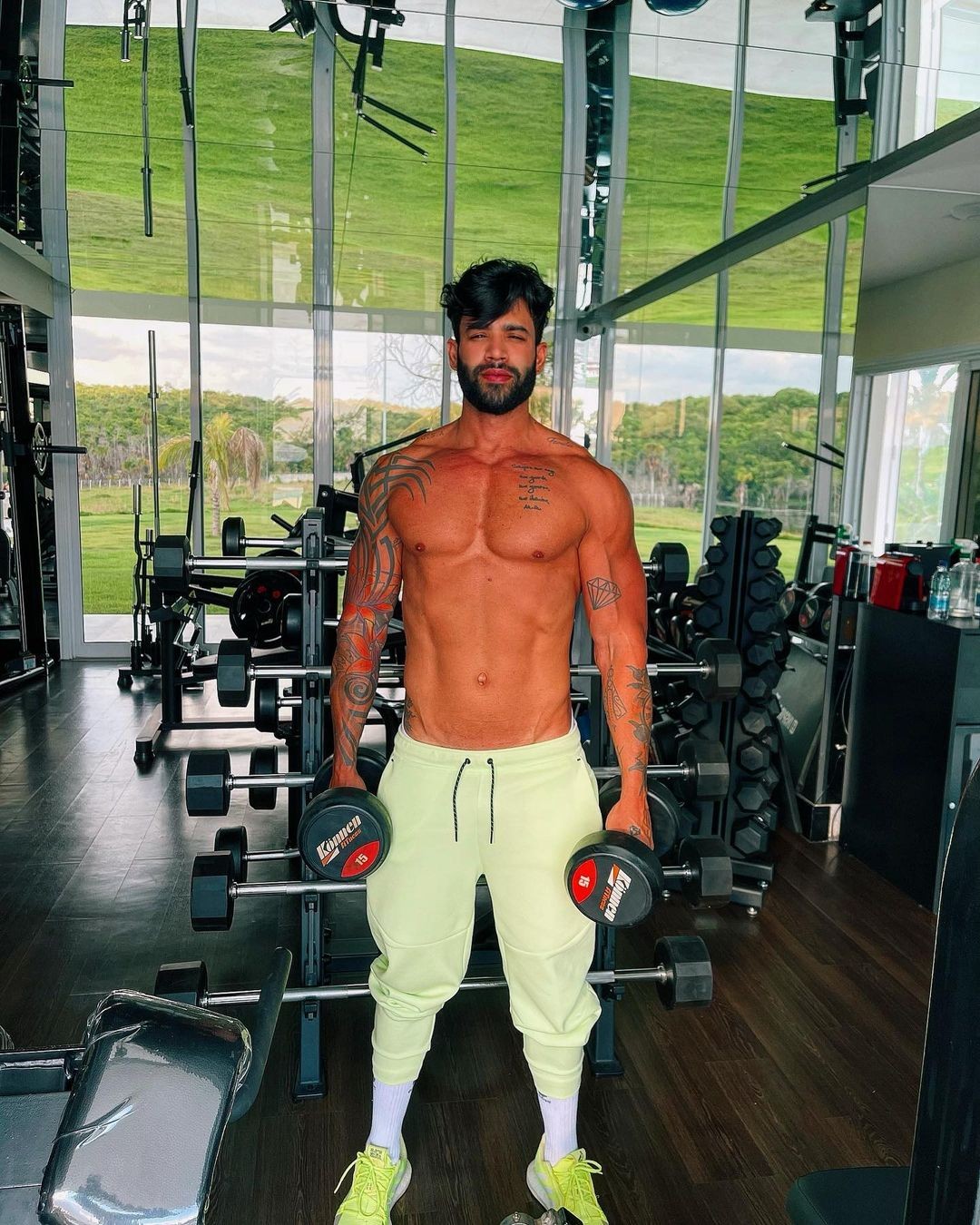 Gusttavo Lima na academia de sua mansão — Foto: Reprodução Instagram
