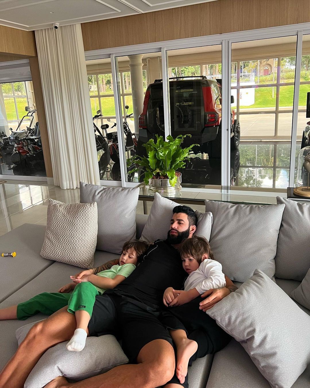Gusttavo Lima com os filhos na sala de sua luxuosa casa — Foto: Reprodução Instagram