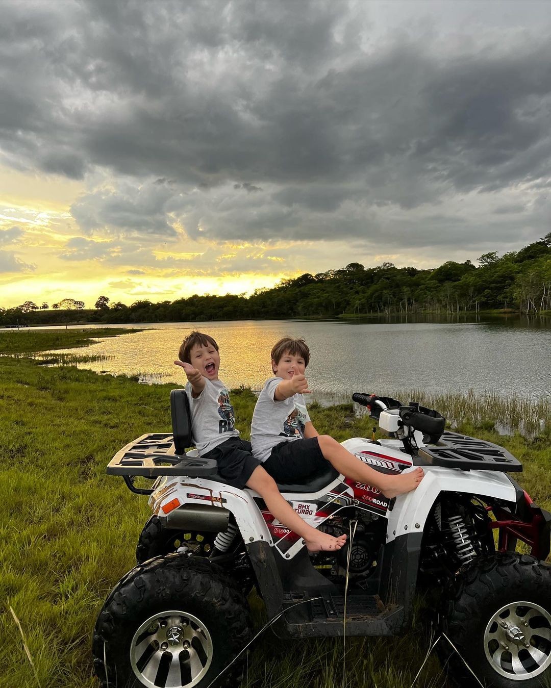 Filhos de Gusttavo Lima em passeio de quadriciclo na mansão da família — Foto: Reprodução Instagram