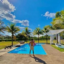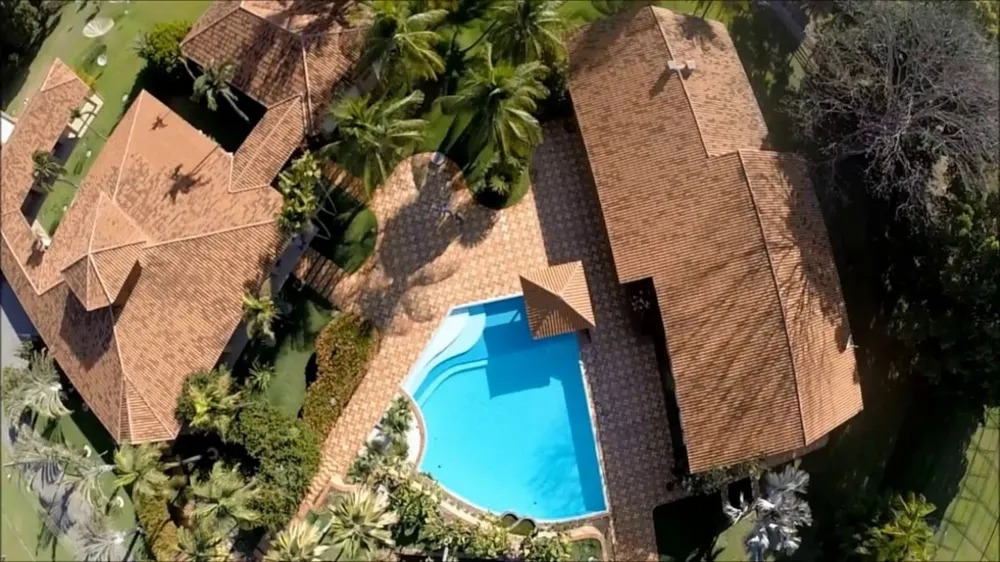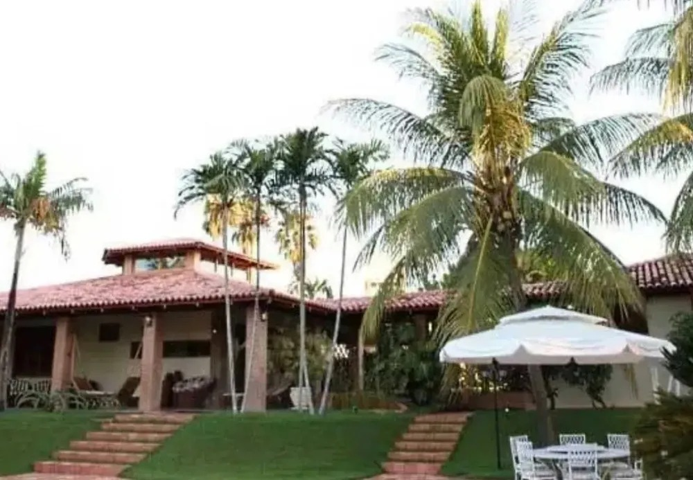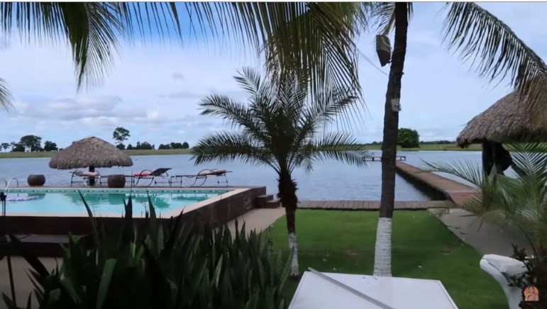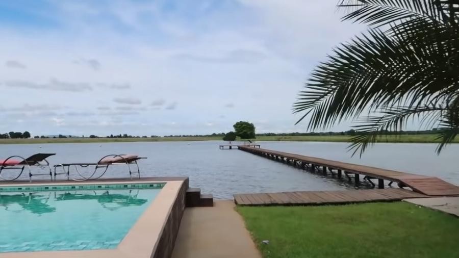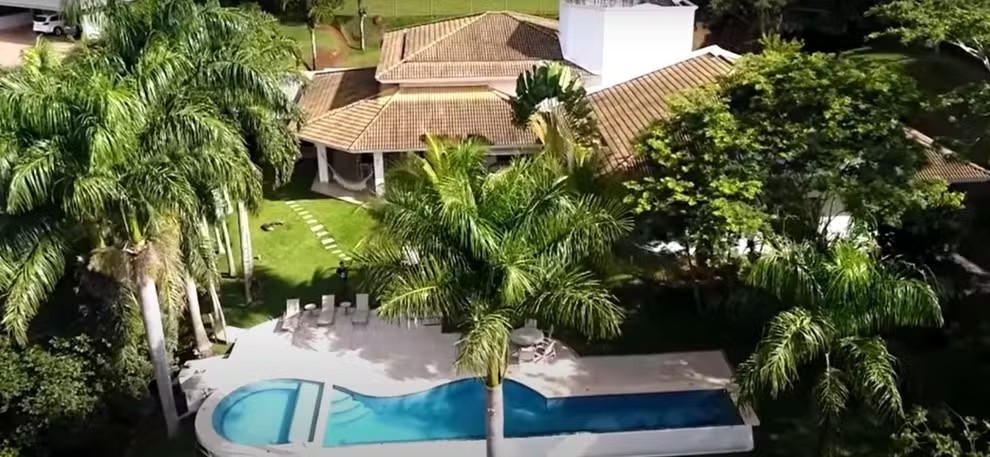 O espaço abriga uma ampla casa,quadras esportivas,lago,jet ski,quadriciclo,piscina,área de jogos,churrasqueira e até igreja.