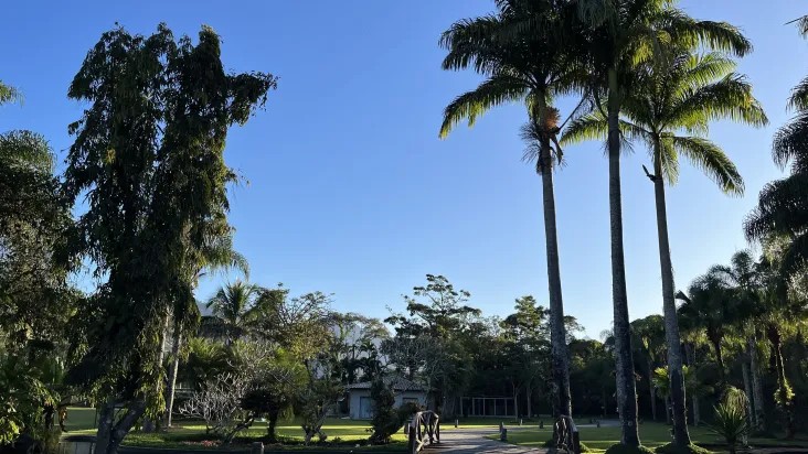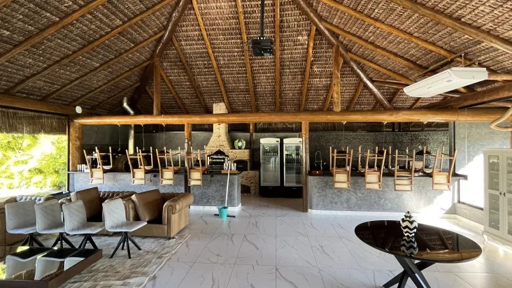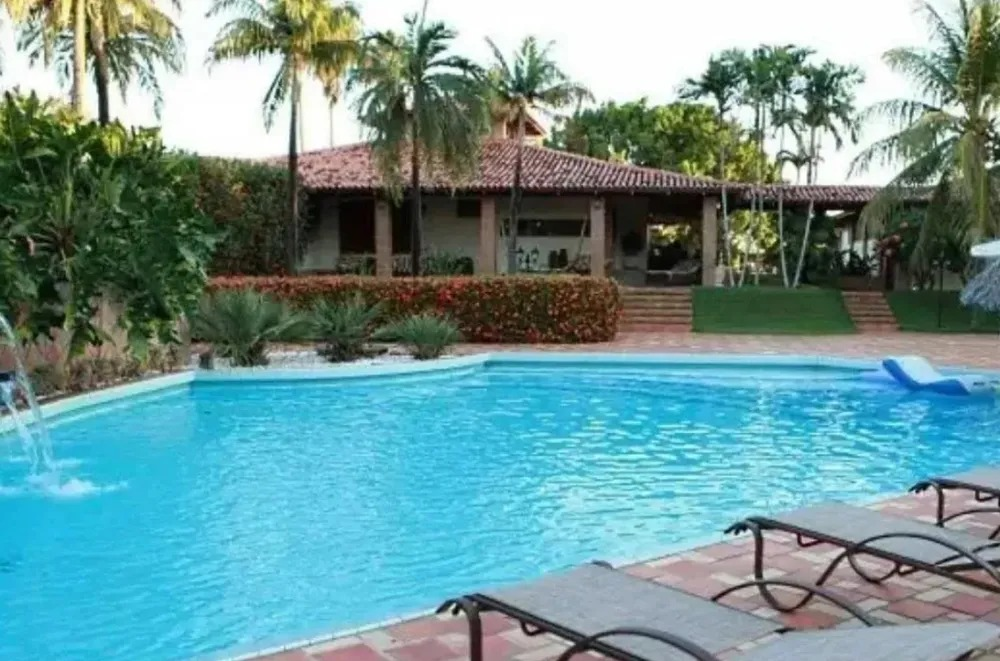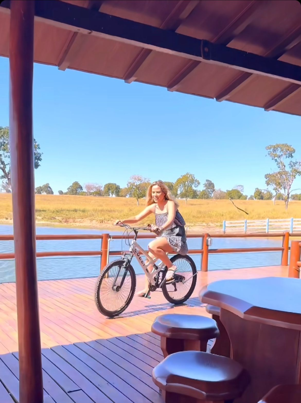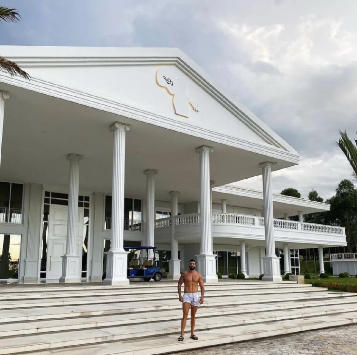 O espaço abriga uma ampla casa,quadras esportivas,lago,jet ski,quadriciclo,piscina,área de jogos,churrasqueira e até igreja.