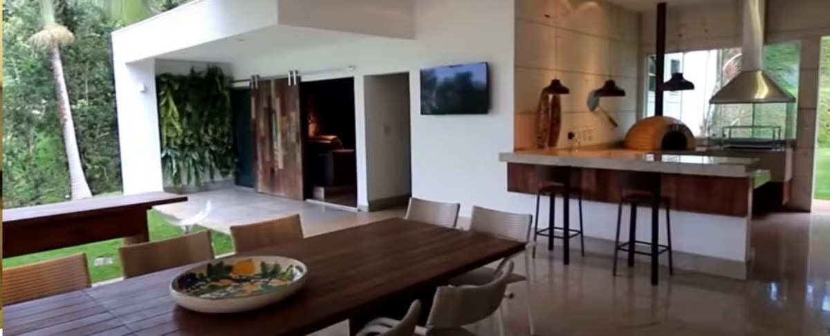 Em sites especializados,a mansão do artista já chegou a ser avaliada em R$ 50 milhões. São três mil metros quadrados de área construída,onde estão incluídas salas,varandas,escritório,suítes com closet,cozinha,varanda gourmet e home kids.