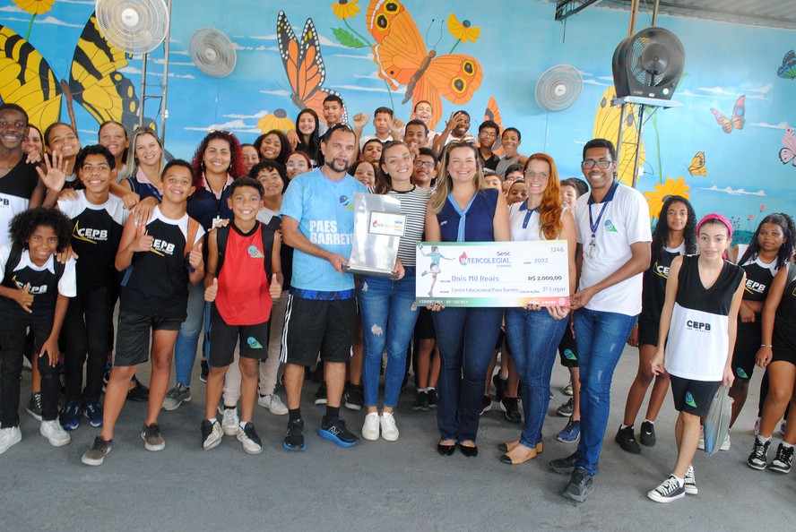 Centro Educacional Paes Barreto,de Duque de Caxias,exibe prêmio por terceiro lugar no Intersolidário de 2023 — Foto: Ari Gomes/Divulgação