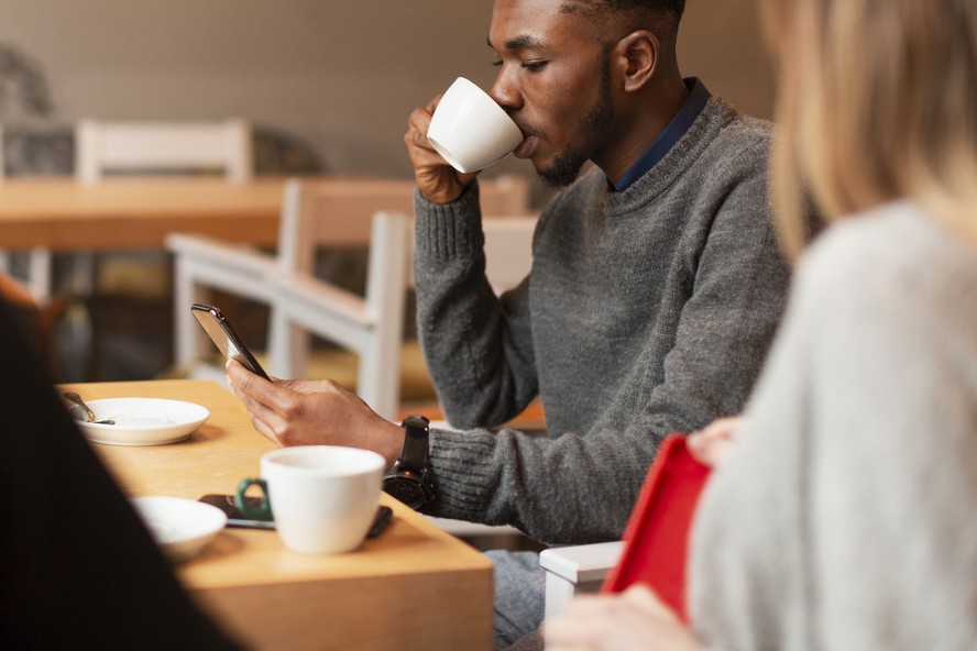 Os pesquisadores acreditam que os poderosos efeitos anti-inflamatórios do café podem neutralizar os danos causados por passar horas sentado todos os dias — Foto: Freepik
