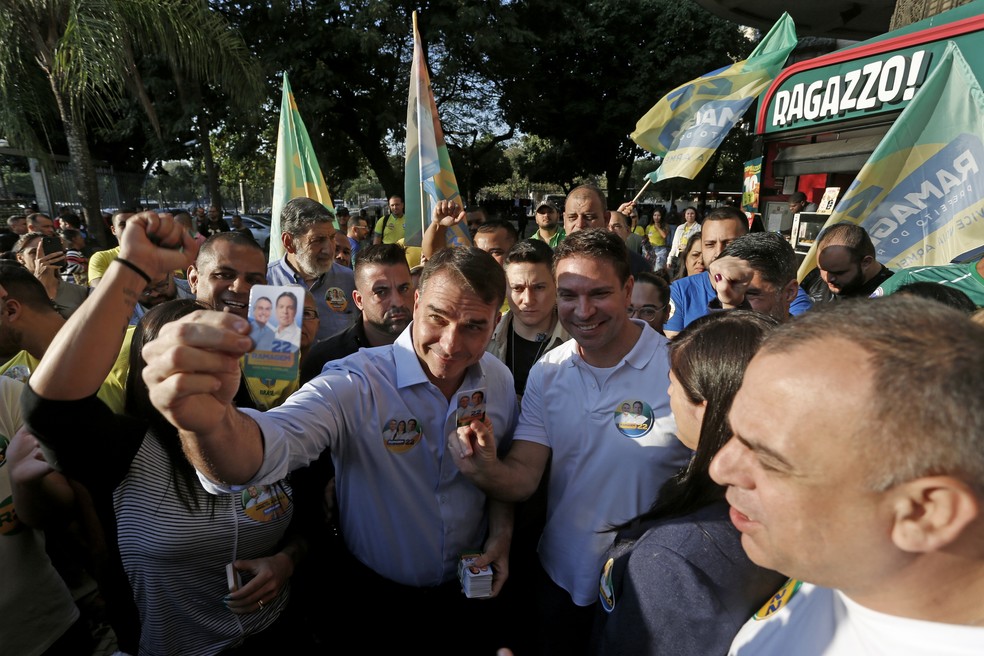 Ramagem com Flávio Bolsonaro em agenda na Central do Brasil — Foto: Fabiano Rocha/O Globo