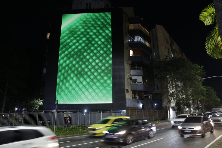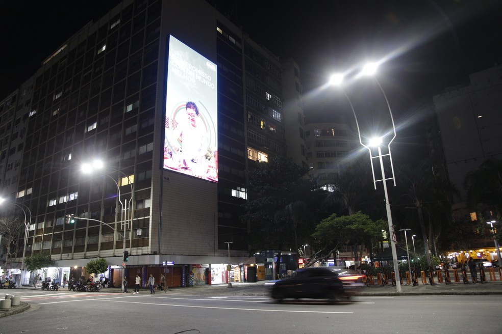 Painel na Rua Mário Ribeiro,no Leblon: luminosidade incomoda moradores de prédios próximos — Foto: Alexandre Cassiano/15-08-2024