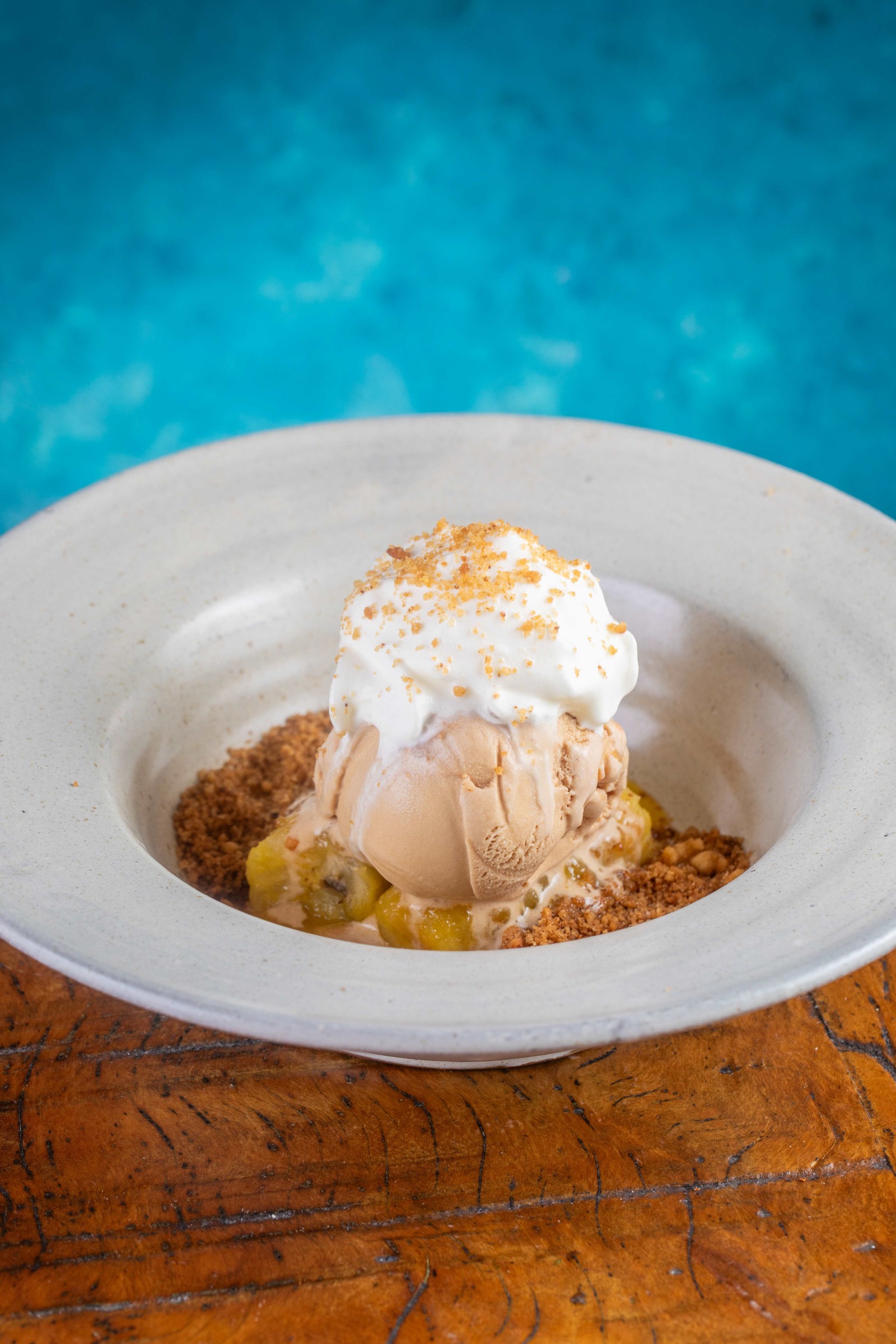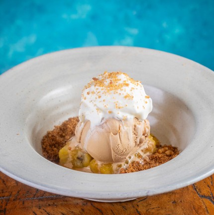 Pesqueiro. Quiosque (99995-4795) na Praia da Reserva oferece banoffee (R$ 37) com banana flambada,gelato de doce de leite,chantilly e farofa de canela — Foto: Divulgação/ Tomas Rangel