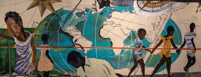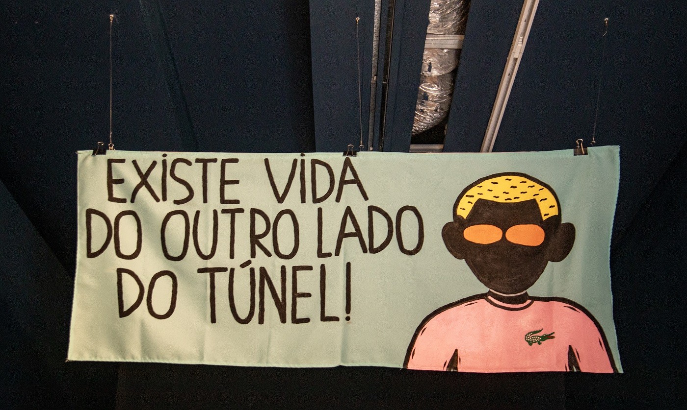 'Existe vida do outro lado do túnel' (2022),tinta sobre tecido de Guilherme Kid — Foto: Ana Branco