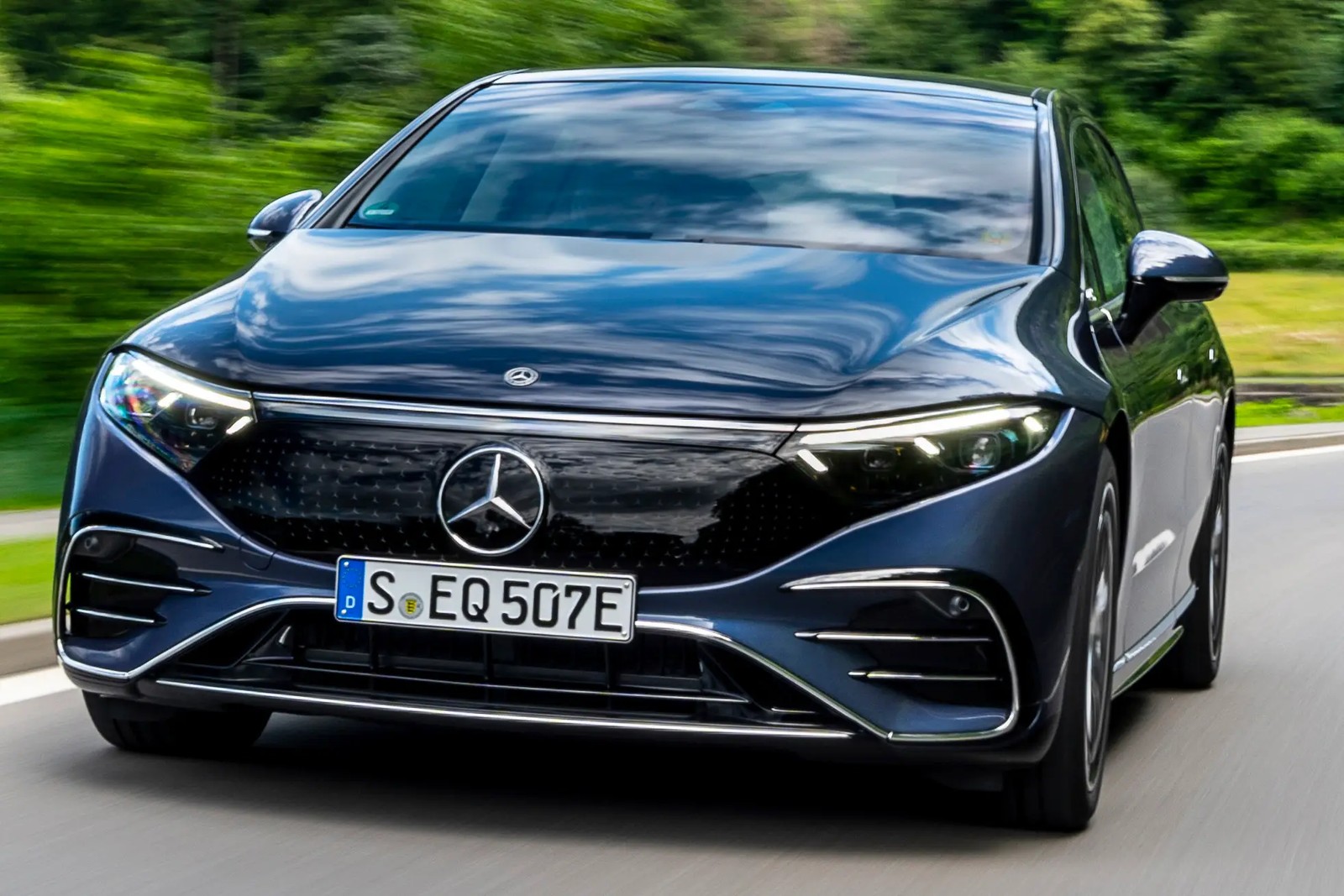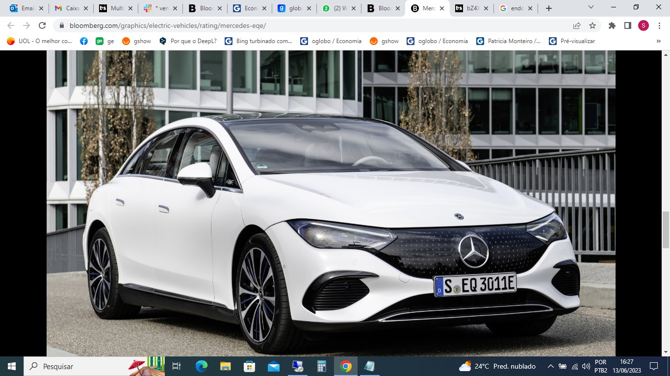 O Mercedes Benz EQS é o carro de produção tecnologicamente mais avançado que a marca já produziu,o EQS inclui recursos futuristas,como um amplo painel curvo que funciona como tela sensível ao toque,assentos massageadores,controle de voz,controles biométricos e atualizações de software over-the-air. Preço de saída: R$ 505 mil/Divulgação