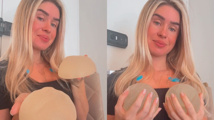 Debora Peixoto mostrou suas antigas próteses de silicone — Foto: Divulgação