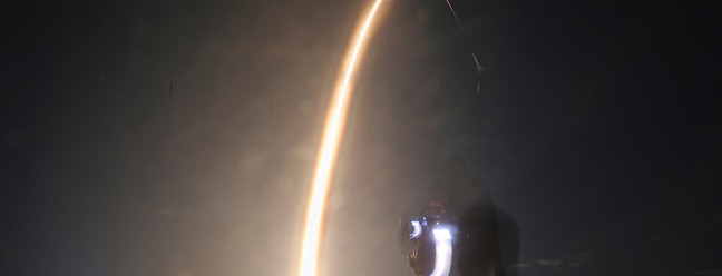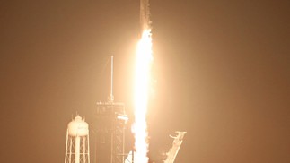 Na ponta de um foguete Falcon 9,a cápsula Dragon da SpaceX deverá atingir uma altitude máxima de 1.400km,a maior distância para uma missão tripulada em quase meio século,desde as missões lunares Apollo.