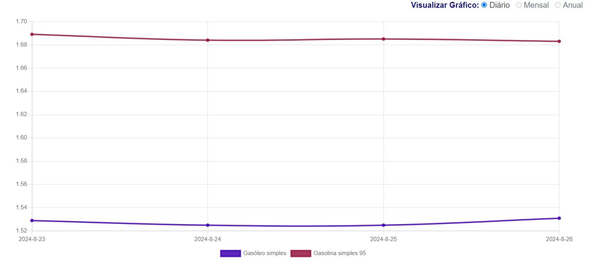 Gráfico: Evolução dos preços dos combustíveis