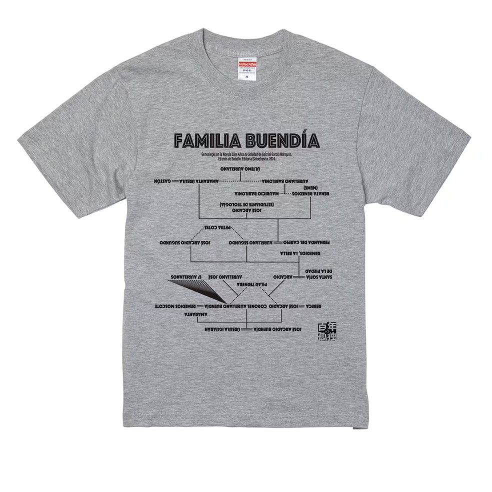 Camiseta com a árvore genealógica Buendía,parte da divulgação da nova edição de 'Cem Anos de Solidão' — Foto: Divulgação / Editora Shinchosha