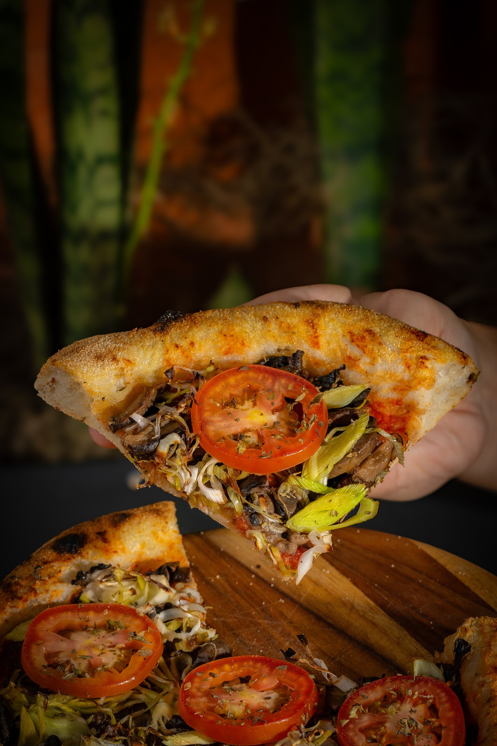 Jotabê. Pizza vegana (R$ 69) com molho de tomate italiano,mix de cogumelos no shoyu,alho-poró e tomate italiano; para finalizar,orégano (97085-6262) — Foto: Divulgação