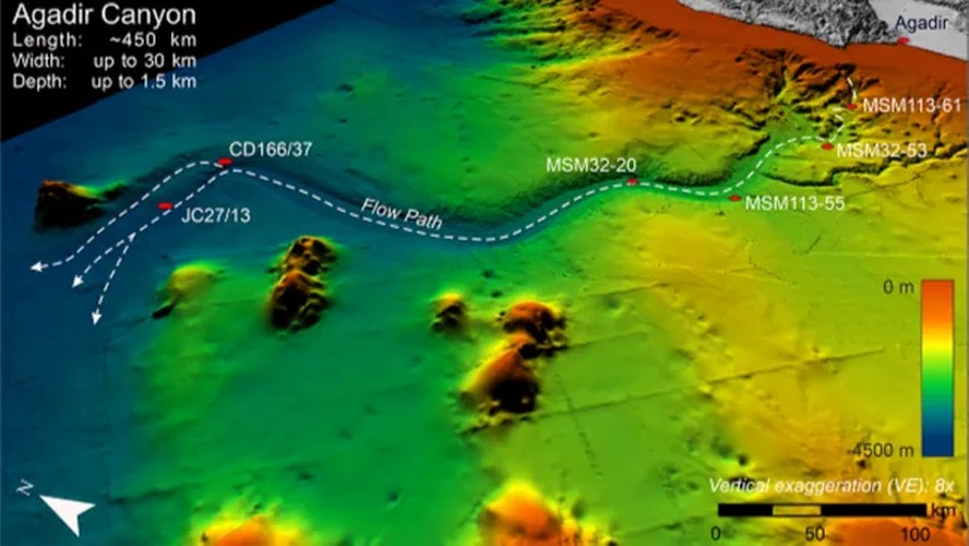 Os pesquisadores usaram dados de sedimentos para reconstruir o caminho da avalanche do cânion de Agadir. Eles analisaram mais de 300 amostras de núcleo coletadas durante cruzeiros de pesquisa ao longo dos últimos 40 anos,além de dados sísmicos e batimétricos (topografia do leito do mar) da área. Ao compilar essas informações,criaram um mapa da avalanche que mostra seu caminho sinuoso dentro e além do cânion.