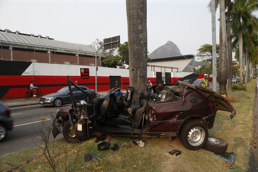Um acidente ocorrido na madrugada desta segunda-feira na Gávea,na Zona Sul do Rio,deixou duas pessoas mortas. O Peugeot 306 transportava quatro homens e colidiu contra uma palmeira na Rua Mário Ribeiro,em frente à sede do Rubro-negro. Breno Carvalho de Sena,de 25 anos,e Igor Jacques Lima da Rocha,de 34,morreram no local. Os sobreviventes,Brendo Dodd,de 26 anos,e Fagner Ribeiro,de 24,ficaram feridos e foram levados para o Hospital municipal Miguel Couto. Os dois tiveram alta ainda nesta segunda-feira.