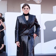 O look de Megan Ria no Festival de Cinema de Veneza — Foto: Getty Images
