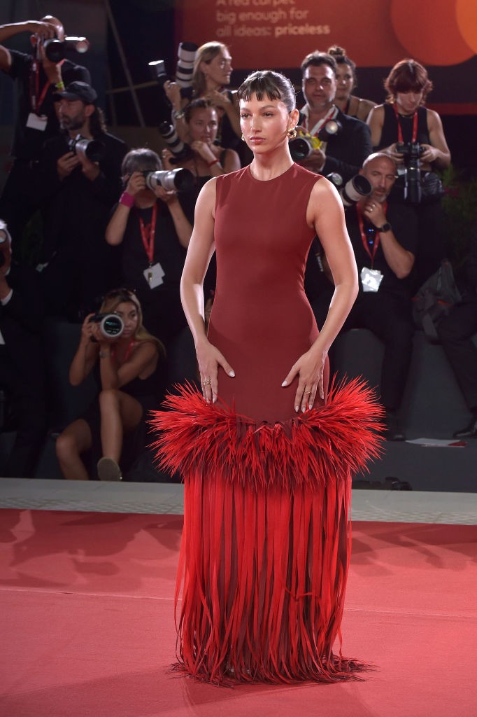 Úrsula Corberó usou look vermelho da Bottega Veneta — Foto: Getty Images