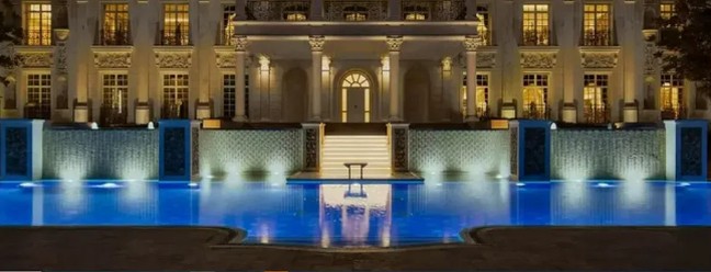 Palácio de Mármore foi construída com pedra italiana e fica no bairro de Emirates Hills — Foto: Divulgação/Luxhabitat Sotheby's International Realty