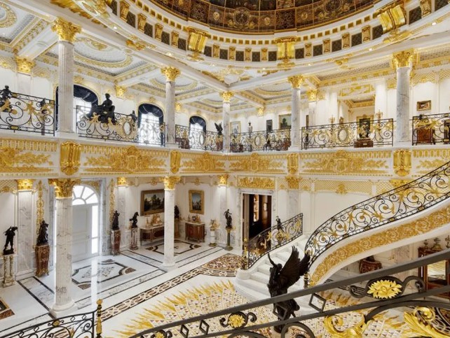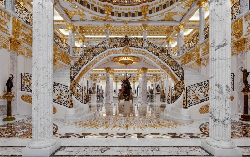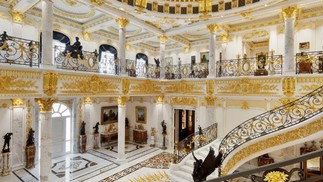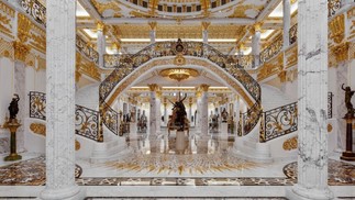 Palácio de Mármore tem 700 mil folhas de ouro aplicadas em sua estruturas e 160 colunas de mármore — Foto: Divulgação/Luxhabitat Sotheby's International Realty