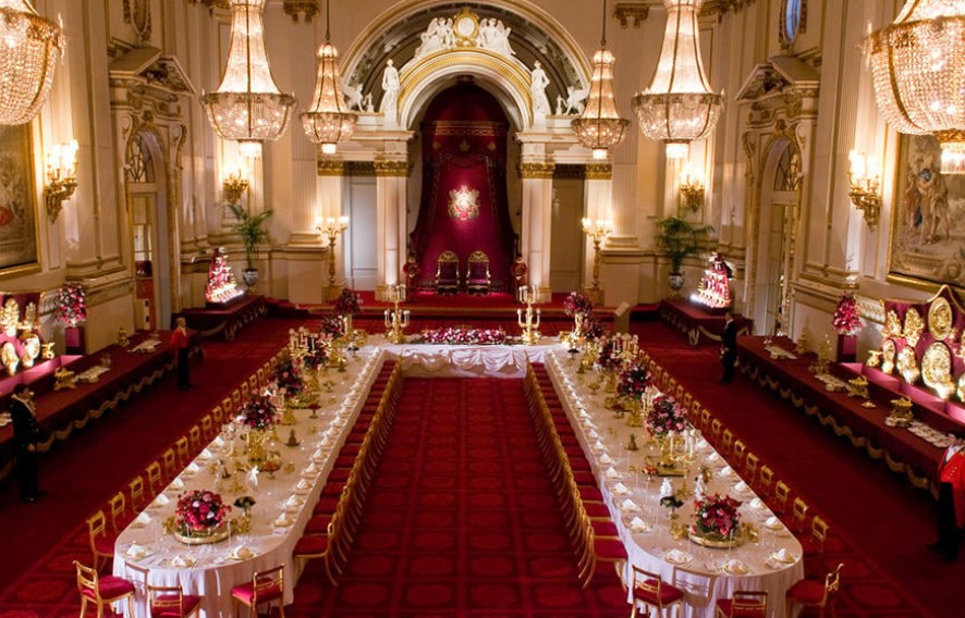 Sala de baile do Palácio de Buckingham já foi usada para coroações e hoje recebe banquetes de Estado — Foto: Royal Collection Trust