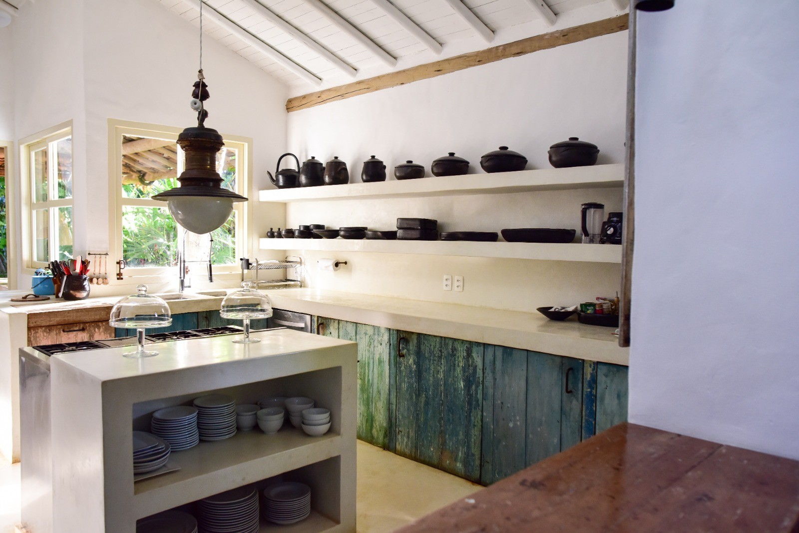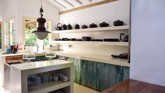 Cozinha Casa Anderson: casa abriga três suítes construídas em estruturas separadas refletindo o passado arquitetônico da Bahia — Foto: Elaine Neves/ O Globo