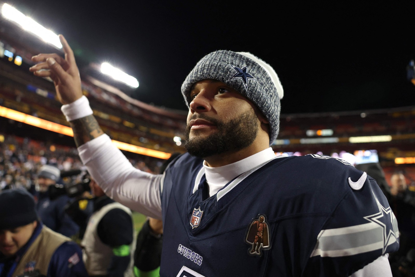 Dak Prescott,quarterback do Dallas Cowboys,que faturou a NFC Leste em 2023 — Foto: Patrick Smith / Getty Images via AFP