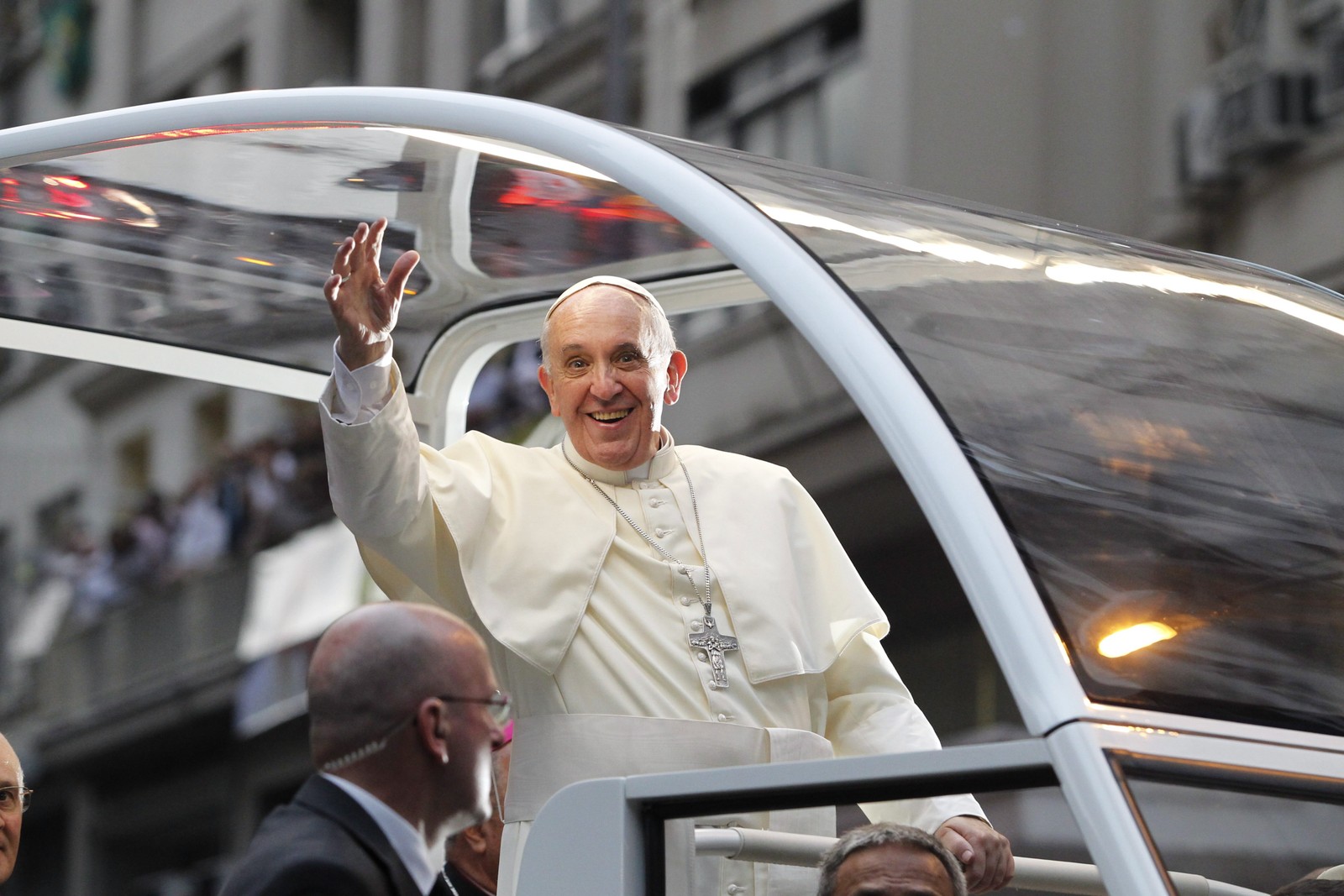 Papa Francisco acena para fiéis durante sua visita ao Rio,em 2013 — Foto: Roberto Moreyra / Agência O Globo