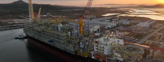 Plataforma P-74 no campo de Búzios,no pré-sal da Bacia de Santos — Foto: Andre Ribeiro / Banco de Imagens Petrobras