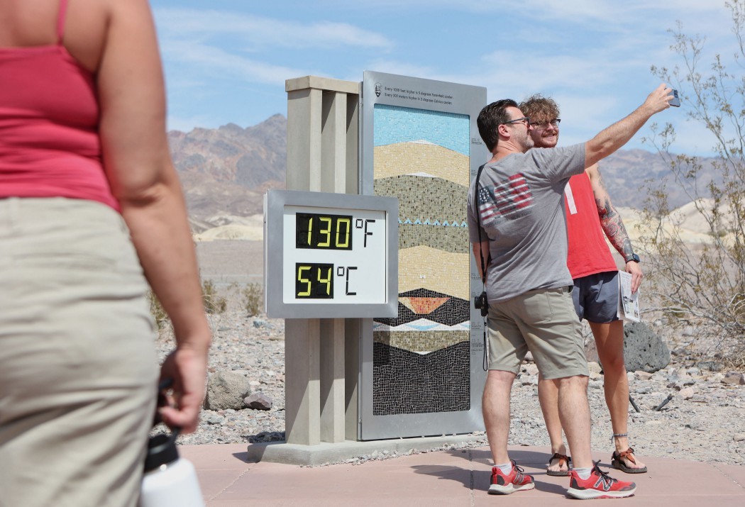Turistas enfrentam calor de acima de 50ºC no Vale da Morte,nos EUA — Foto: Ronda Churchill/AFP