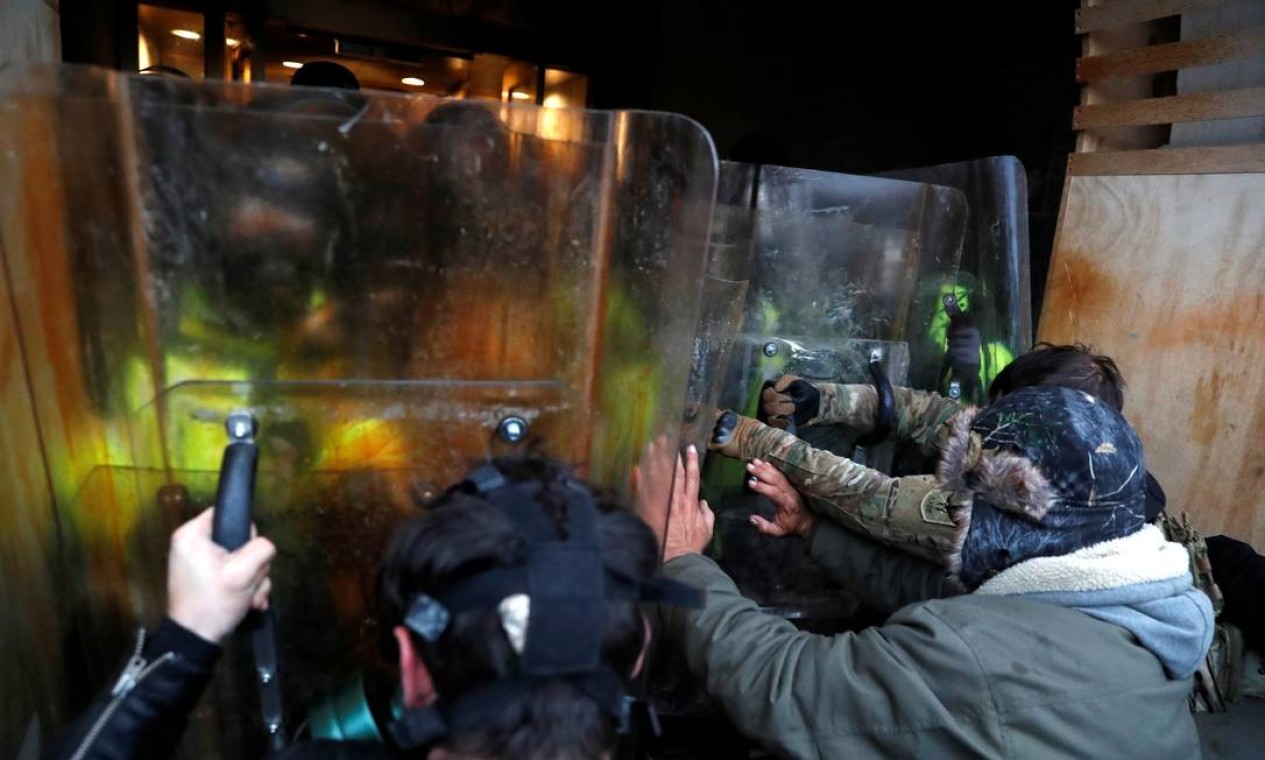 Manifestantes entram em confronto com a polícia do Capitólio durante um protesto — Foto: SHANNON STAPLETON / REUTERS