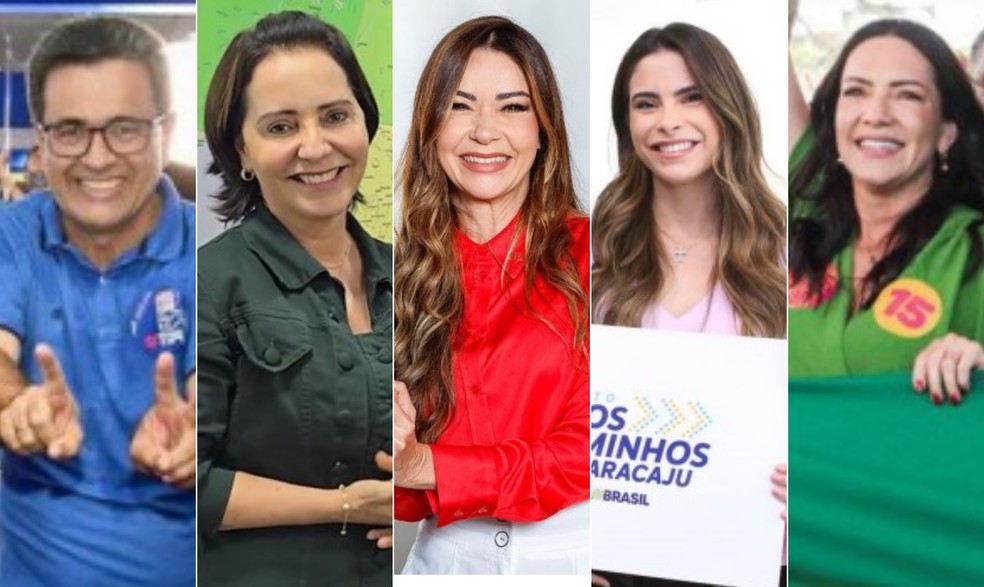 Da esquerda para a direita: Luiz Roberto (PDT),Emília Corrêa (PL),Candisse Carvalho (PT),Yandra Moura (União) e Delegada Danielle (MDB) — Foto: Reprodução