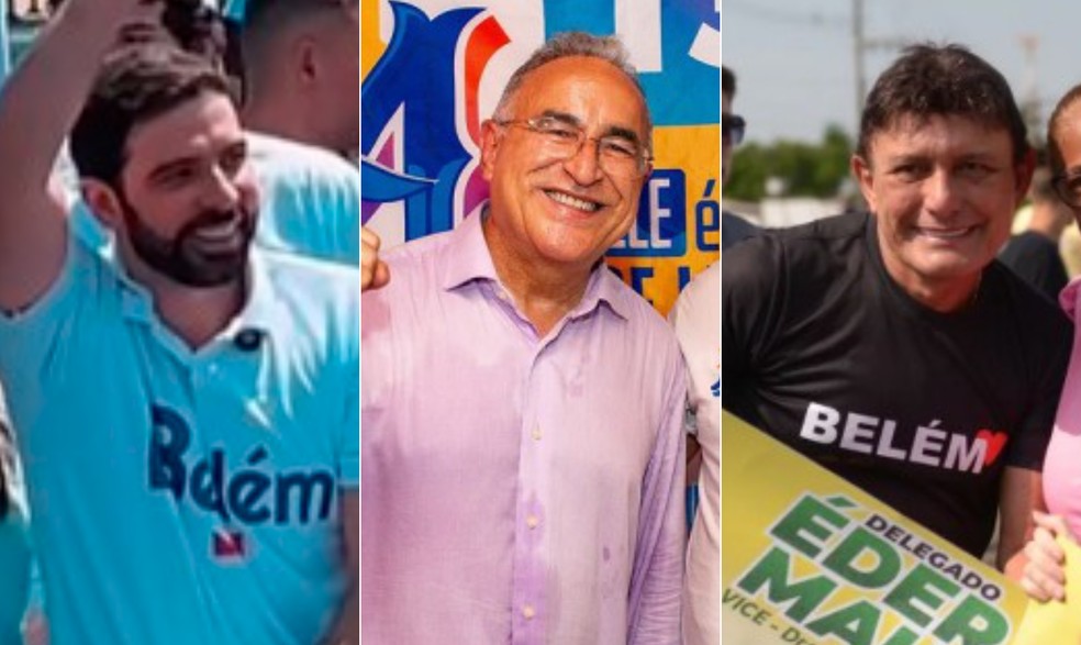 Da esquerda para a direita: Igor Normando (MDB),Edmilson Rodrigues (PSOL) e Éder Mauro (PL) — Foto: Reprodução