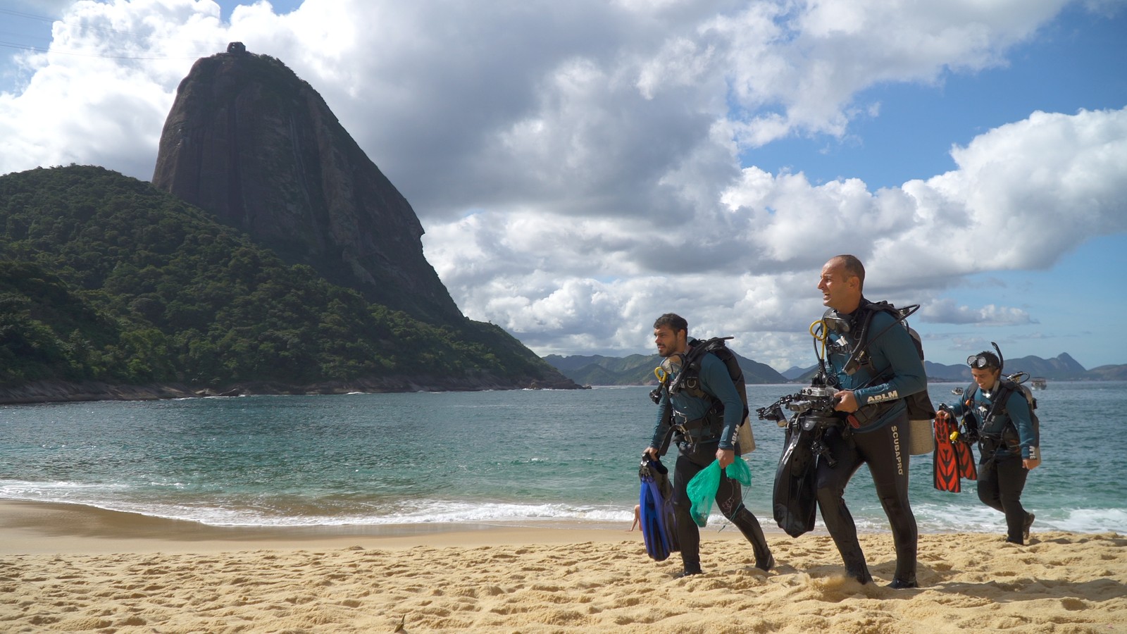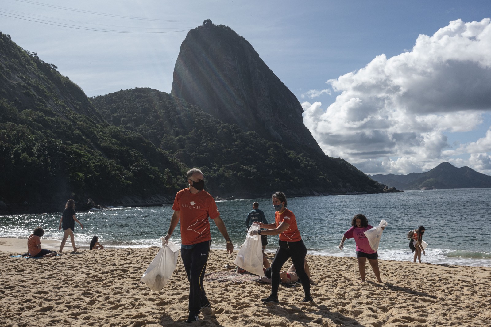 Voluntários do Projeto Verde Mar participam do mutirão de limpeza na Praia Vermelha,no Rio — Foto: Projeto Verde Mar / Divulgação