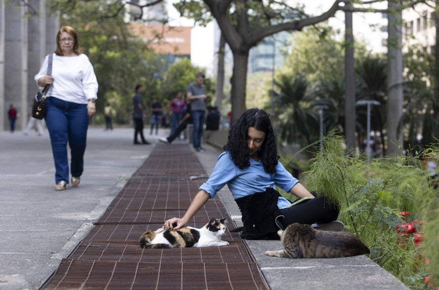 No prédio do Centro Administrativo São Sebastião,a colônia tem cerca de 150 gatos,boa parte deles batizados pelos diferentes grupos que se reúnem espontaneamente para garantir alimentação aos animais. Muitos ficam tão chegados que ganham nomes dos “donos”. Estão por lá,em cima de uma casinha charmosamente desenhada,dentro de um caixote improvisado e até no vão de uma coluna do prédio,o Laurinho,o Breu,o Catatau,a Broa,a Odete,o Tang,a Marmelada e a Frida. De acordo com a Secretaria municipal de Proteção e Defesa dos Animais,os inquilinos do pedaço foram esterilizados,microchipados e vacinados.