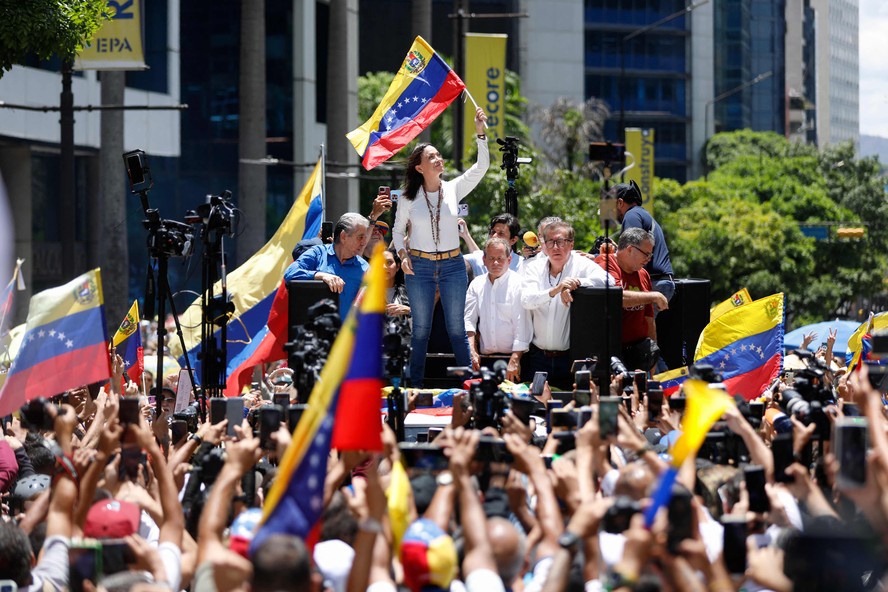 — Maduro deu sinal verde para uma repressão descontrolada. Jovens são parados nas ruas e obrigados a mostrar seus celulares. Em alguns casos,agentes pedem até US$ 500 (R$ 2.799,30) para não os prenderem. Invadem casas e arrastam as pessoas pelo chão — denuncia María Corina.