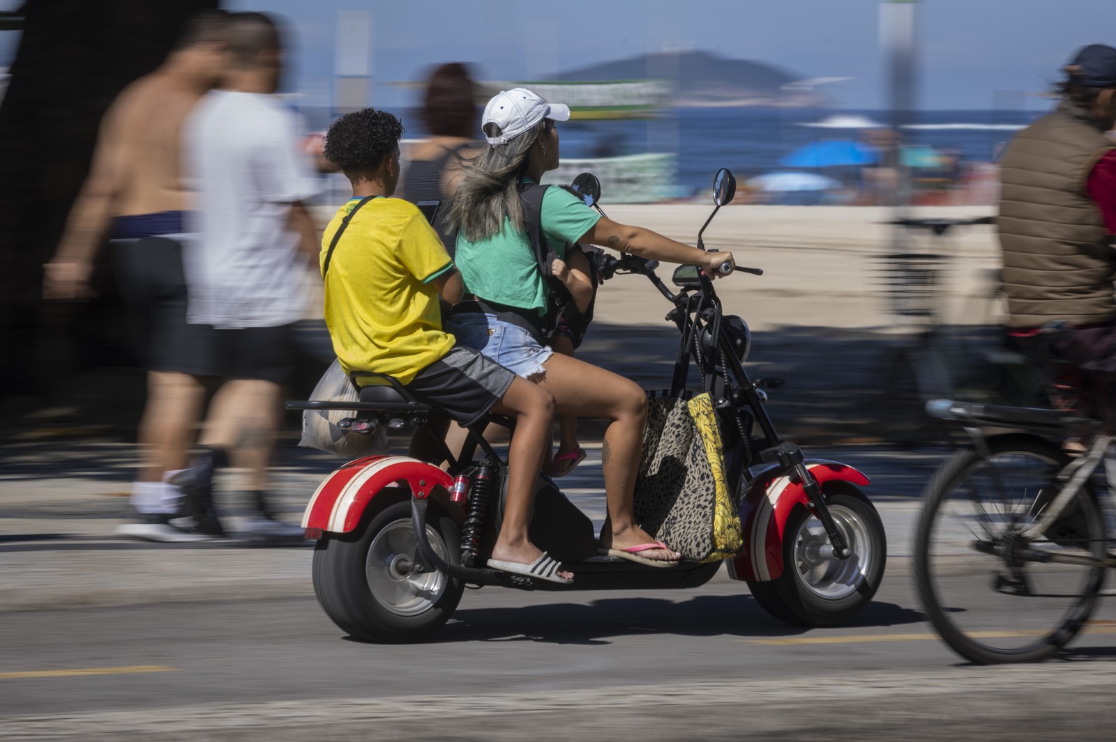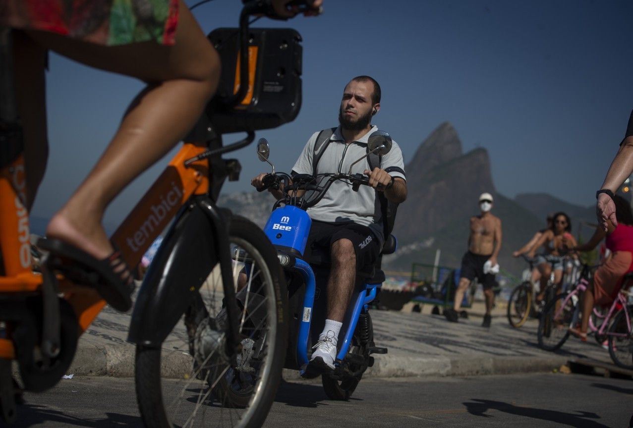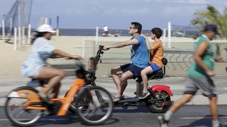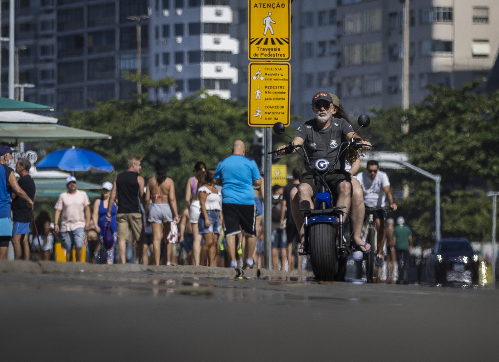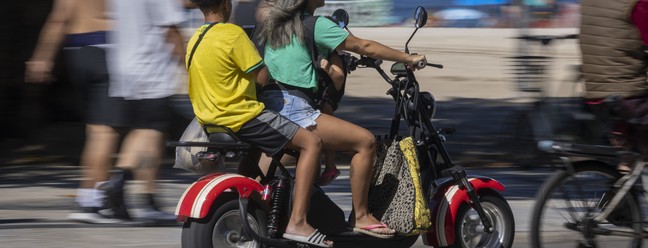 Ciclomotores e bicicletas elétricas circulam na orla de Copacabana — Foto: Márcia Foletto / Agência O Globo