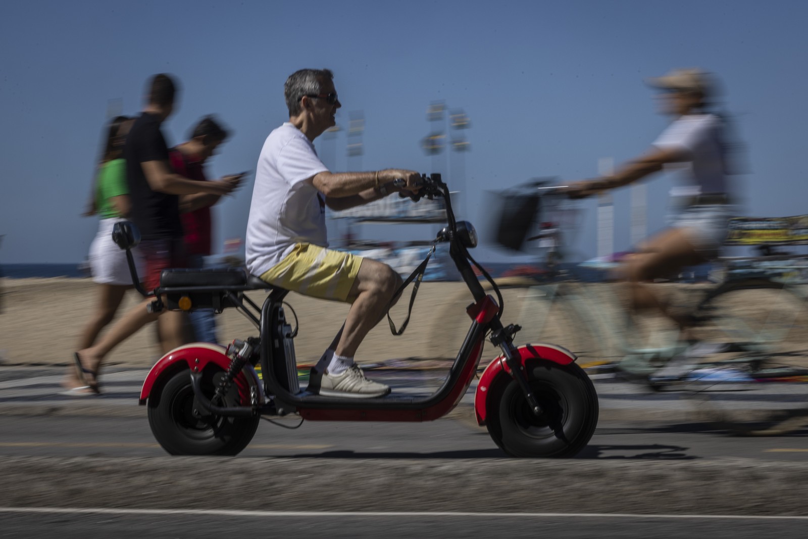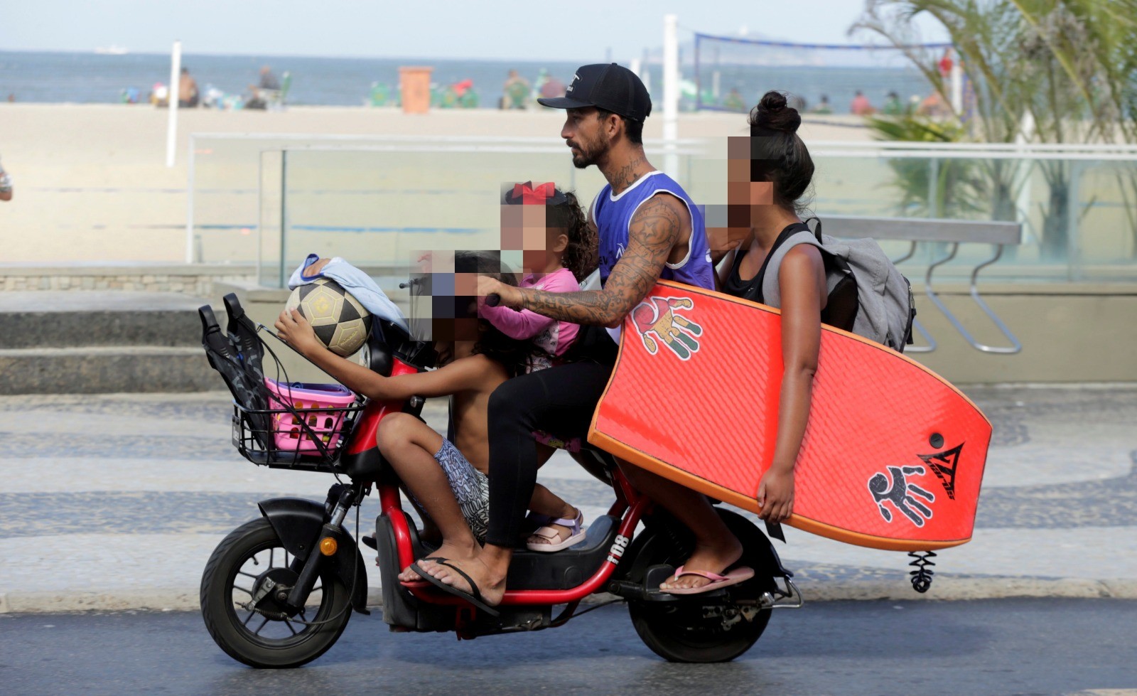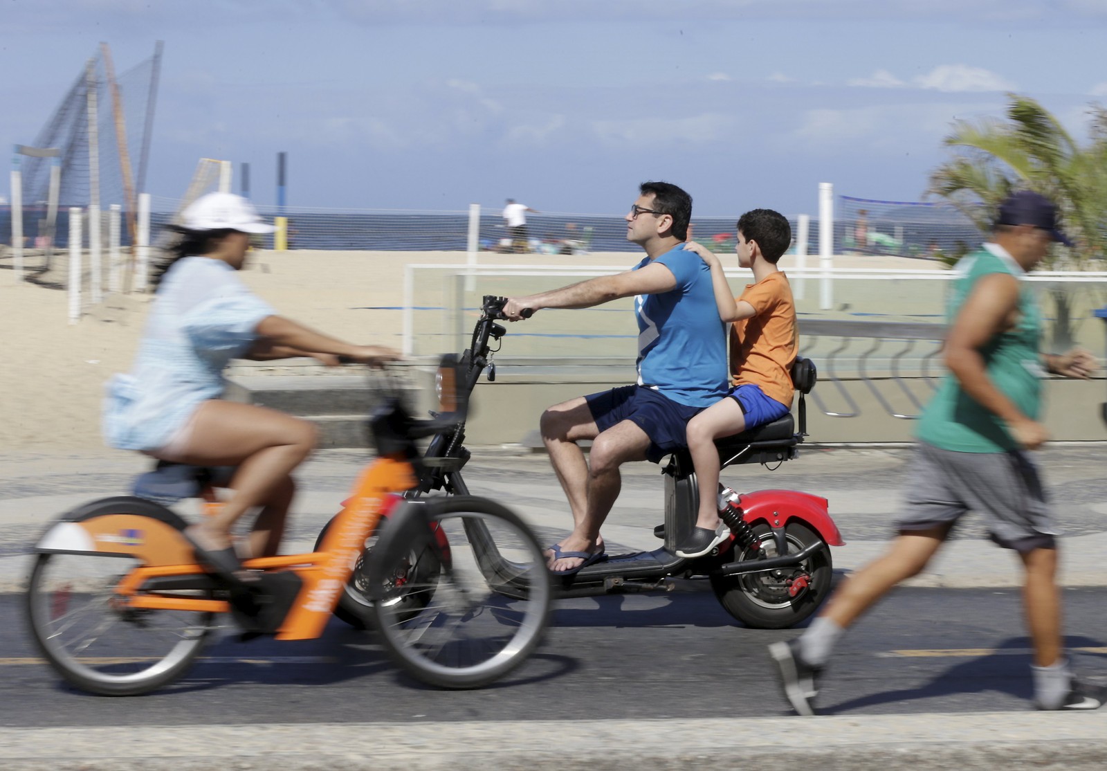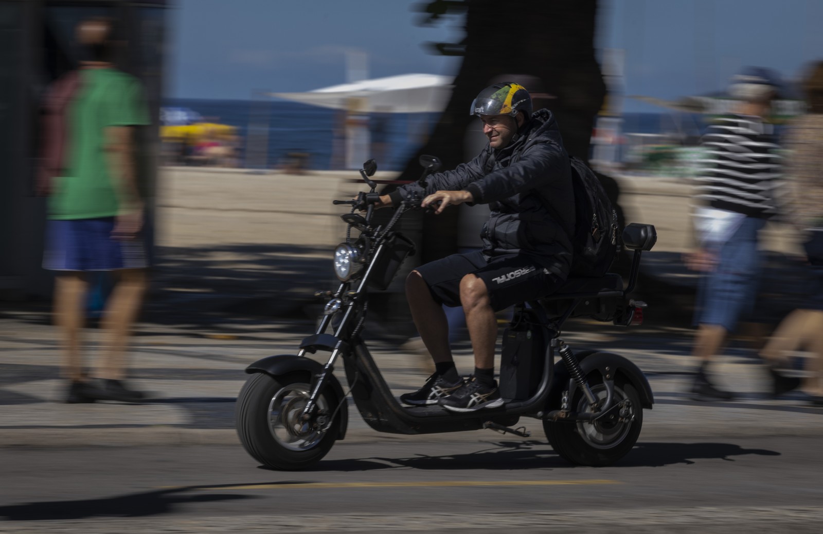 Ciclomotores e bicicletas elétricas circulam na orla de Copacabana — Foto: Márcia Foletto / Agência O Globo