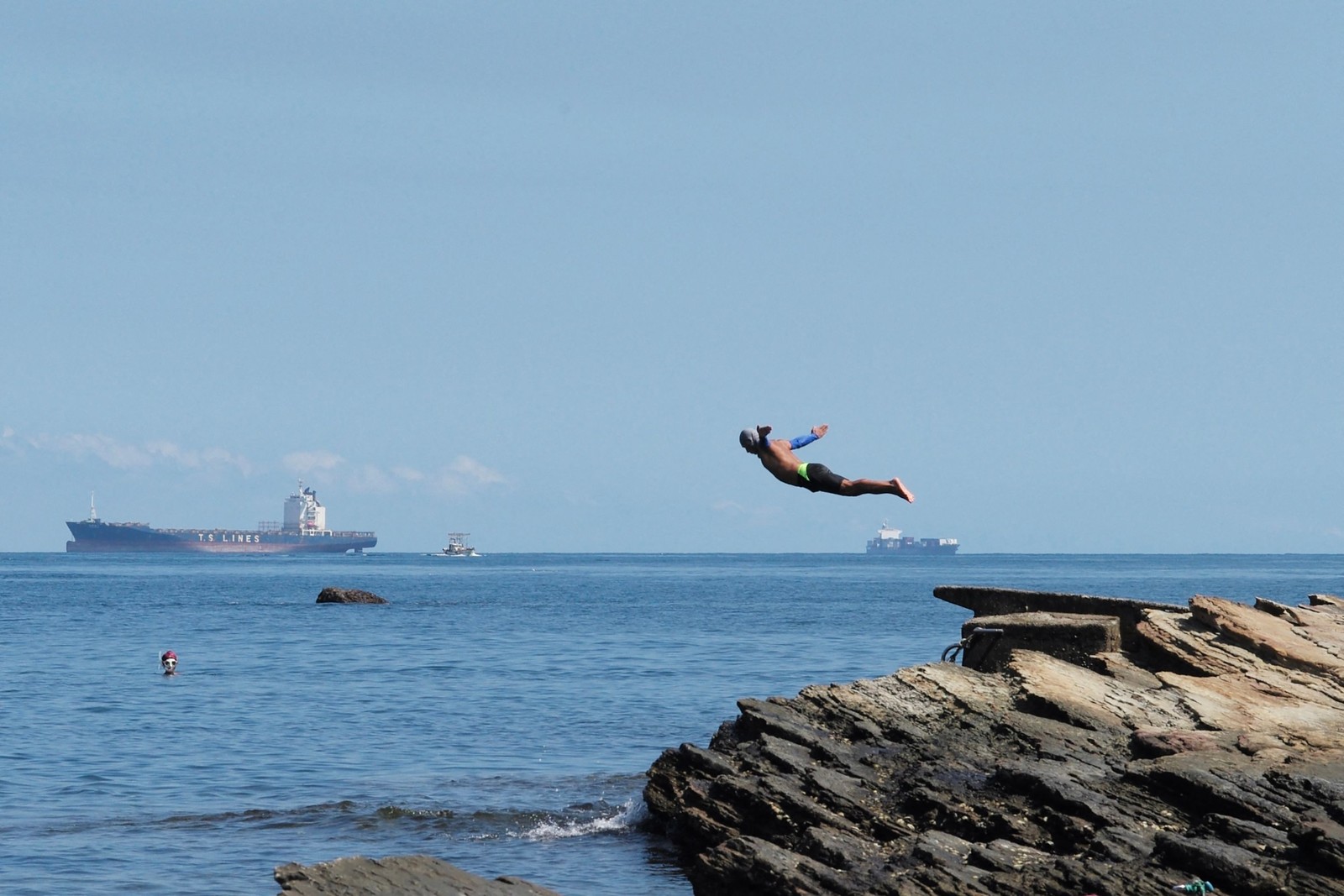 Turistas observam trilho de fumaça de projétil lançado durante exercício militar chinês na ilha de Taiwan — Foto: Hector Retamal / AFP