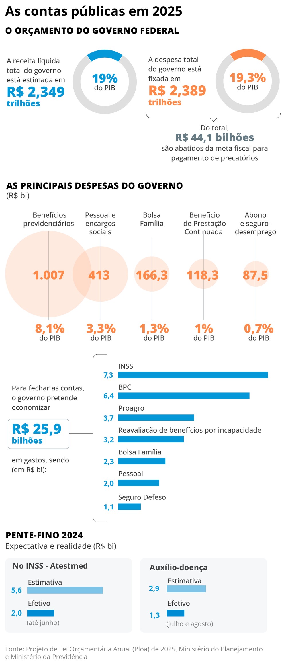 Em 2024,a previsão é poupar R$ 10 bilhões,principalmente com gastos do INSS. Mas,a quatro meses do fim do ano,a economia alcançada com os benefícios previdenciários é de cerca de 40% do total. Já no ano que vem,o governo conta com a redução de R$ 25,9 bilhões em gastos obrigatórios com a iniciativa,focada novamente no INSS.