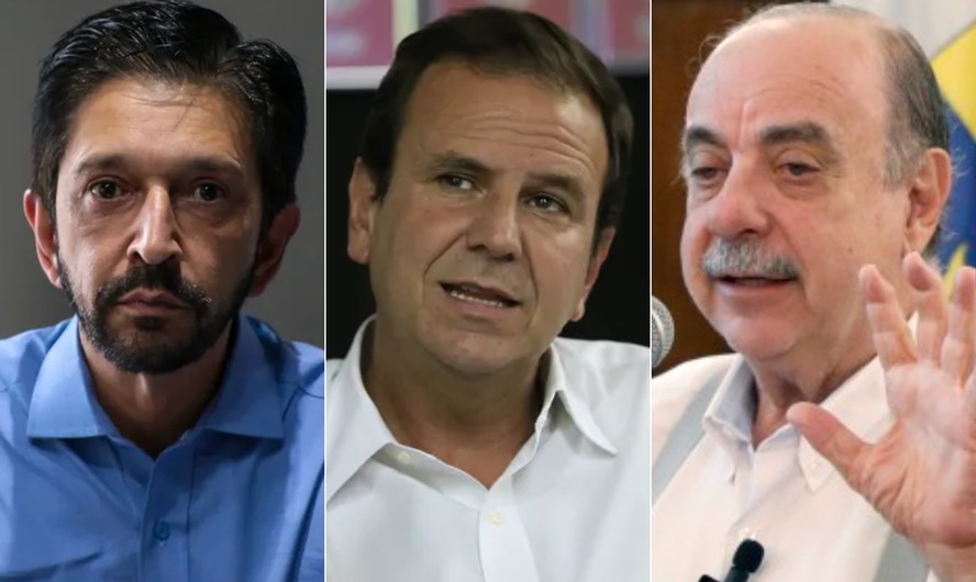 Os prefeitos Ricardo Nunes (SP),Eduardo Paes (RJ) e Fuad Noman (BH) — Foto: sadora de Leão Moreira/Governo do Estado de SP,Roberto Moreyra,Rodrigo Clemente / PBH