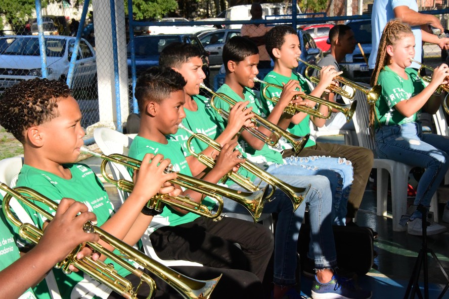 Mais de 120 jovens de escolas públicas de Niterói já aprenderam a tocar algum instrumento em Piratininga,no projeto da Agência do Bem — Foto: Divulgação
