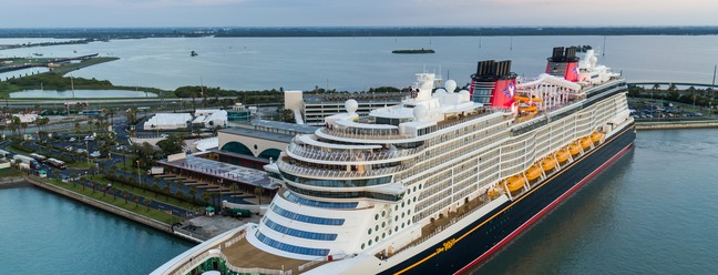 Imagem aérea do Disney Wish,novo navio de cruzeiros da Disney Cruise Line,lançado em junho de 2022 — Foto: Divulgação / Disney Cruise Line