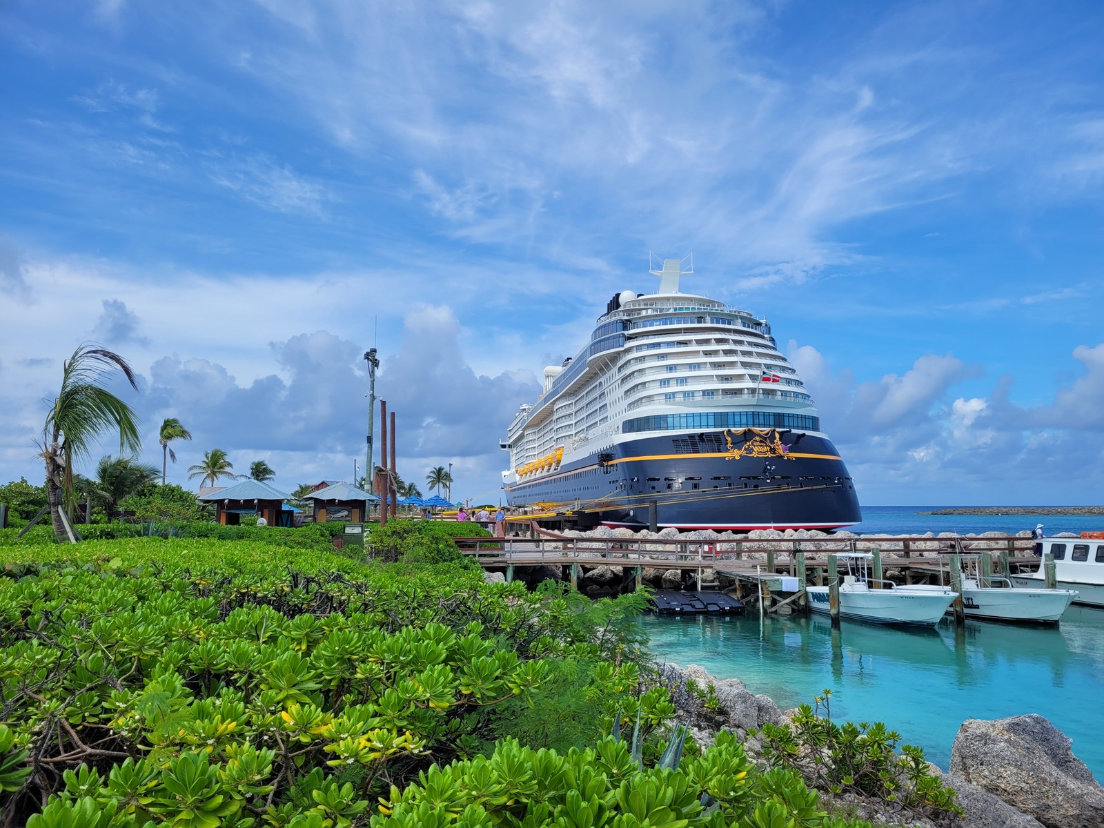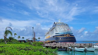 Aqui fotografado em Castaway Cay,a ilha privada da Disney nas Bahamas,o Disney Wish tem capacidade para até quatro mil passageiros — Foto: Eduardo Maia / O Globo