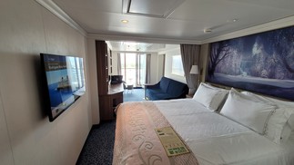 O navio apresenta um novo tipo de habitação,as quatro Royal Suites,inspiradas em "Bela adormecida"; duas delas têm dois andares — Foto: Eduardo Maia / O Globo